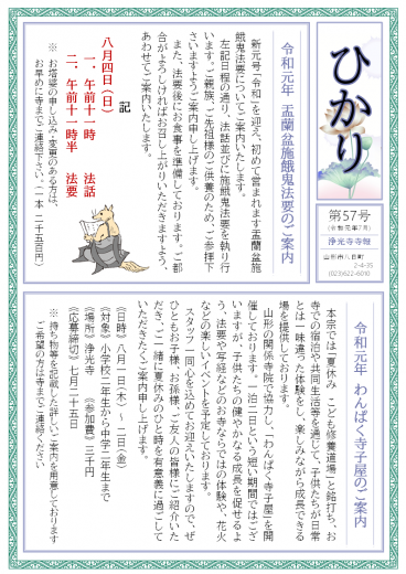 2019年7月に発行した寺報第57号になります。 下記リンクよりPDFファイルをダウンロードしてご覧くだ…