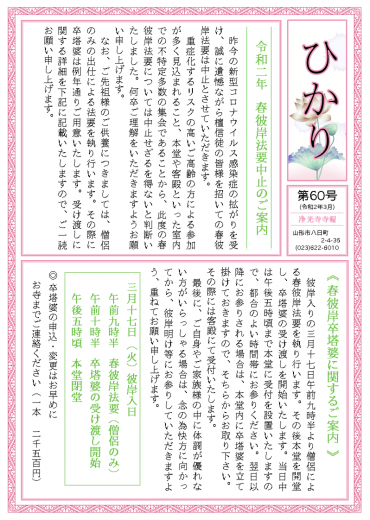 2020年3月に発行した寺報第60号になります。 下記リンクよりPDFファイルをダウンロードしてご覧くだ…