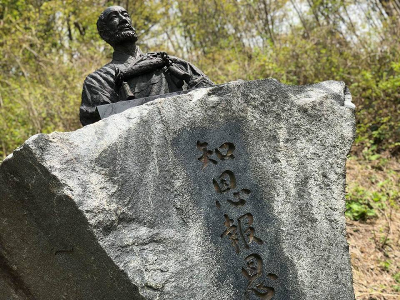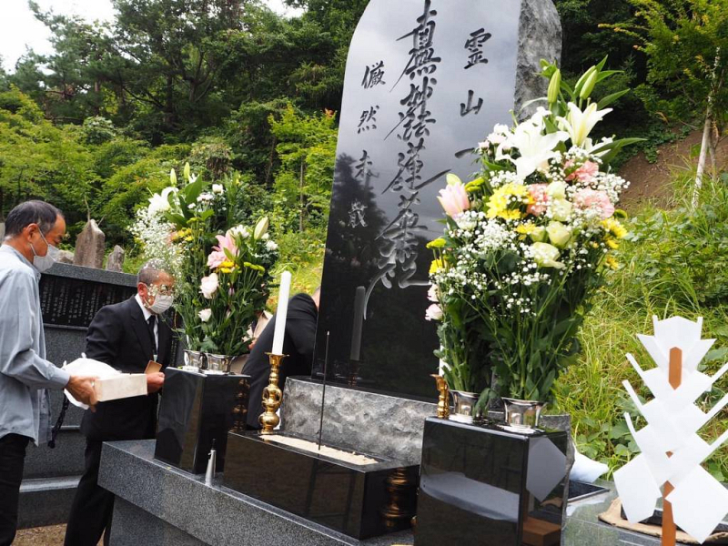 今から七百余年前、日持上人は故郷偲ばれる津軽富士を眺め、父母墓前と身延大聖人の御廟に最後のお別れを申し、海外弘教の誓願を込め一遍の御題目にその魂を留められたのです。