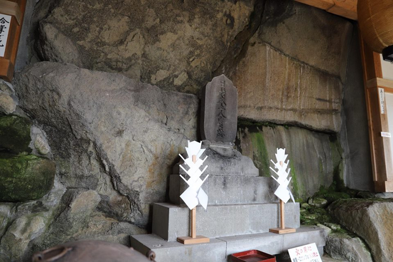 山腹には日蓮大聖人の直弟子、「蓮華阿闍梨日持上人」が御染筆した宝塔題目岩、おなじく三十番神岩が奉られております。