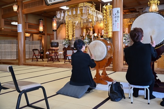 当山は眼下に津軽平野や岩木山、峠からは陸奥湾を眺めることができる風光明媚な山寺であり、大太鼓の音が響き渡りお題目(南無妙法蓮華経)の声たえない法華経の祈祷道場です。