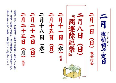 御祈祷予定日 ・2月1日(日) ・2月8日(日…