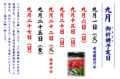 令和2年9月 祈祷予定日