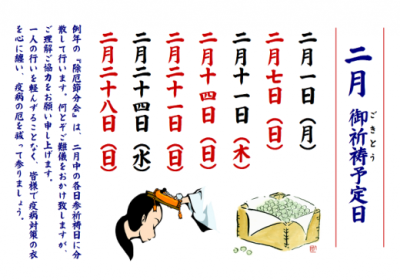 令和3年2月 御祈祷予定日