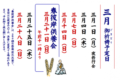 令和3年 春彼岸供養会 ※例年の「春彼岸供養会」は、コロナ禍の感染状況次第で、当日はお焼香のみでの…