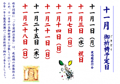 令和3年11月 御祈祷予定日