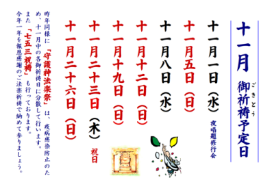 令和5年11月 御祈祷予定日