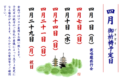 令和6年4月 御祈祷予定日
