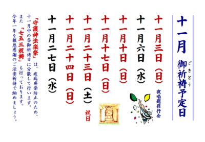 御祈祷予定日 ・12月1日(日)夜間唱題行 ・12月4日…