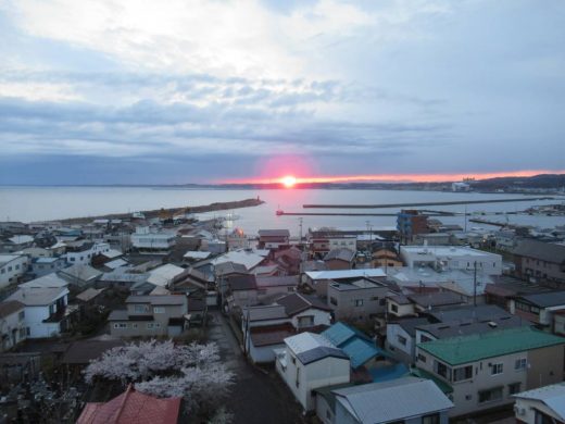 鰺ヶ沢の日の出は4時42分頃、ちょうど中泊方面から太陽が昇りました。