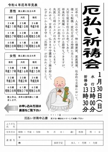 予定どおり開催決定 ― 1月30日(日)【厄払い祈祷会】