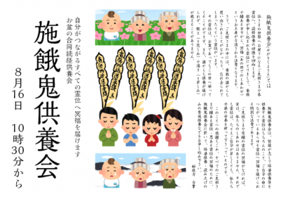 供養等申込受付中 8月16日 施餓鬼供養会 ― お盆の合同読経供養会