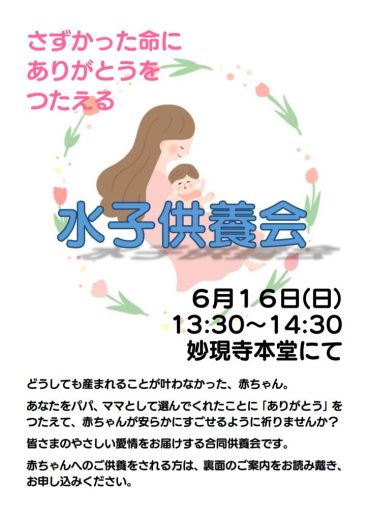 【水子供養会 令和6年6月16日(日)13:30~14:30 妙現寺本堂にて】 さずかった…