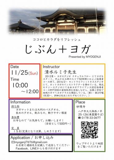 穏やかなお寺の雰囲気に包まれながら、ヨガでココロもカラダもリフレッシュしませんか?
