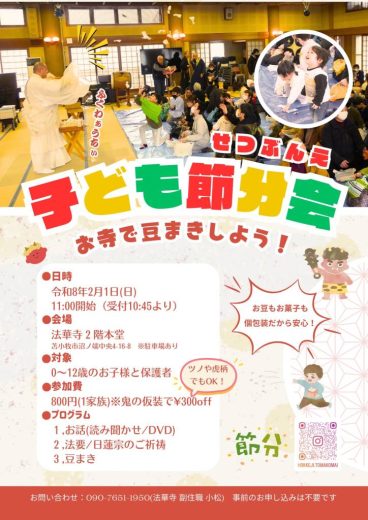 寒さが厳しい日が続いていますが、暦の上ではもうすぐ春ですね。 さて、法華寺では今年の節分に…