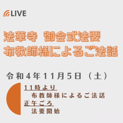 秋もすっかり深まり、気温も大分下がってきましたね。 令和4年11月5日(土)正午より、法華…