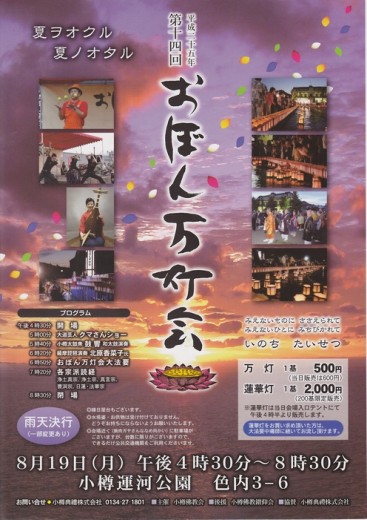 今年も小樽運河公園にておぼん万灯会が開催されます。 小樽の各寺院から万灯を募り、宗派を越えたい…