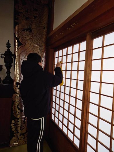 寺族による年末の大掃除を行いました。 天井のすす払いや畳のふき掃除、納骨堂の清掃を行いました…