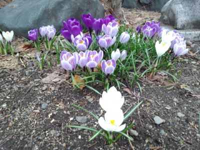 毎年、一番最初に花が開くクロッカスがようやく咲きました。 まだまだ雪の残る妙法寺の境内ですが、…