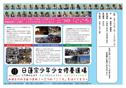7月26日(木)~28日(土)の二泊三日、会場は留萌市感應寺さまです。